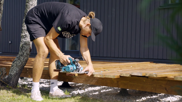 Viimistlusfaasis lõikas Kristjan kõik üleulatuvad lauad sirgeks, lihvis servad siledaks ja töötles pinnad terrassiõliga, et anda puidule ühtlane toon ning lisakaitse ilmastiku eest. Nagu kogu ehituse jooksul, oli ka siin fookus igal detailil – et kõik saaks tehtud korralikult ja läbimõeldult.
