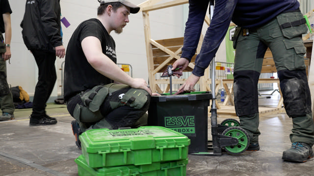 Võistlusalal võis näha ka ESSVE ESSBOX+ süsteemi - tublit abilist, mis aitas noortel ehituspuuseppadel oma töövahendid ja kinnitusvahendid kenasti ühes kohas hoida. Pärnu Kutsehariduskeskuse ehituspuusepad olid selle süsteemi võistlusele kaasa võtnud, et kõik vajalik oleks alati käepärast. Nii kulus vähem aega asjade otsimisele ja rohkem aega tööle endale — tõeline abimees, mis andis noortele kindlust ja kiirust juurde!