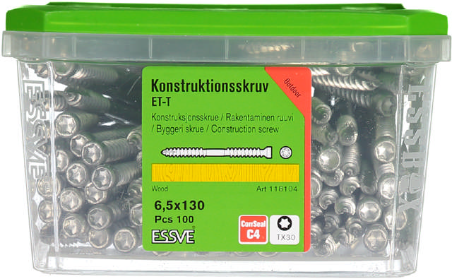 ESSVE konstruktsioonikruvi ET-T on mõeldud puidust detailide, puitkonstruktsioonide, liimpuidu jmt ühendamiseks sise- ja välistingimustes. Kasutades kolme ET-T kruvi saad asendada ühe talakinga ja 18 nurgakruvi, mis vähendab märgatavalt paigalduseks kuluvat aega. ESSVE ET-T konstruktsioonikruvi monteerimisel välistingimustes peab puit olema kuiv ja jäävaba.